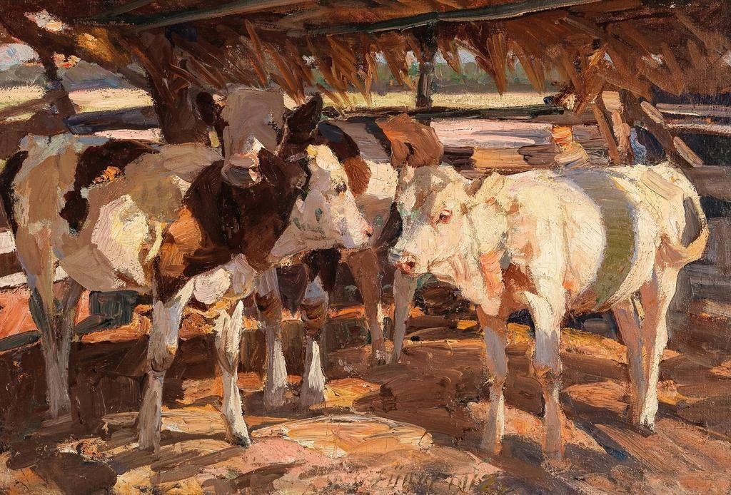 Heinrich von Zügel, nacido en 1850 en Alemania, es reconocido por su talento excepcional en la representación de los animales, en particular de los bovinos. Influenciado por el movimiento realista, se inscribe en una tradición artística que valora la observación minuciosa de la naturaleza. Su carrera se extiende desde finales del siglo XIX hasta principios del XX, período marcado por un interés creciente en la vida rural y las escenas pastorales. Zügel supo capturar la esencia de sus sujetos con una precisión que refleja su amor por la naturaleza y los animales, convirtiéndolo en una figura importante de la pintura animalista de su época.
