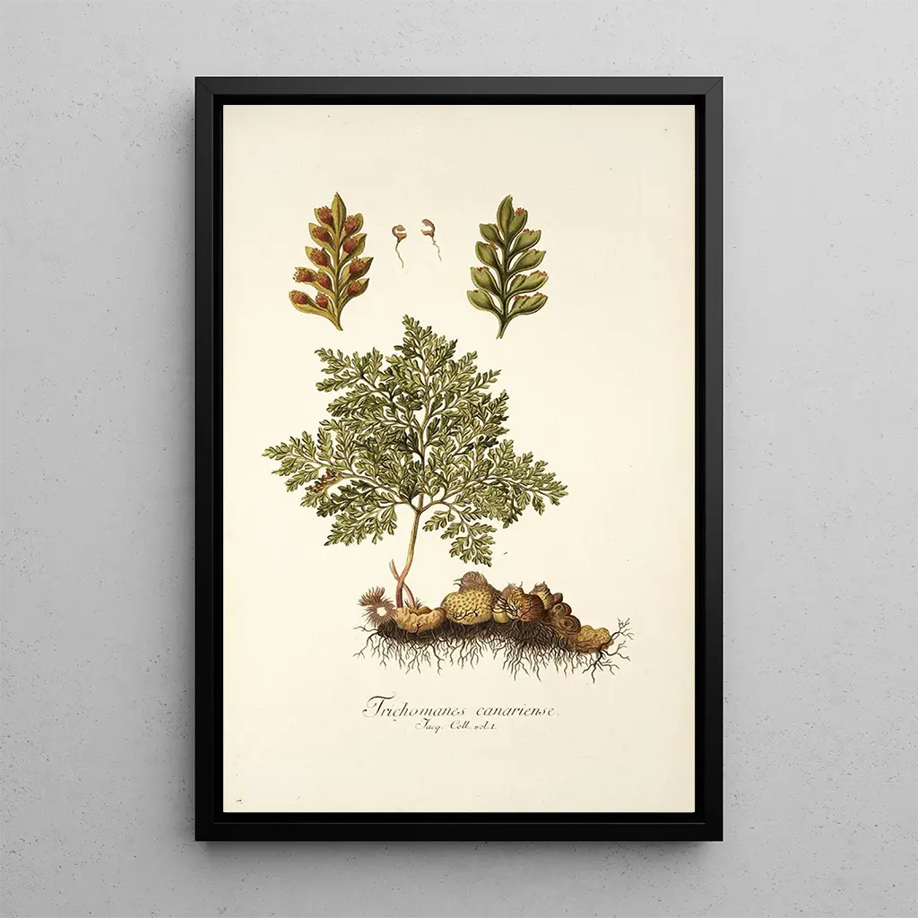 La impresión artística de Trichomanes canariense es una pieza decorativa ideal para aportar un toque de naturaleza a su interior. Ya sea en una sala de estar, una oficina o un dormitorio, este cuadro evoca serenidad y belleza del mundo vegetal. Su calidad de impresión y la fidelidad de los colores la convierten en una opción atractiva para los amantes del arte y la botánica. Al integrar esta obra en su decoración, ofrece a su espacio una atmósfera relajante e inspiradora, celebrando a la vez la riqueza de la biodiversidad.