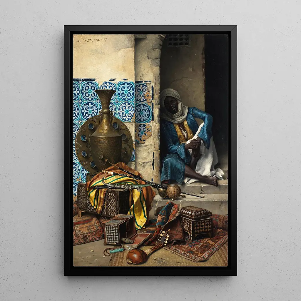 Esta impresión artística de Un marchand d'artefactos es una pieza decorativa que enriquece cualquier espacio, ya sea una sala, una oficina o una biblioteca. Su calidad de reproducción garantiza una fidelidad a los detalles de la obra original, al tiempo que aporta un toque de exotismo y sofisticación a su decoración. El atractivo estético de esta tela, con sus colores vibrantes y sus detalles minuciosos, la convierte en una opción ideal para quienes desean crear un ambiente cálido e inspirador, celebrando la belleza del arte orientalista.