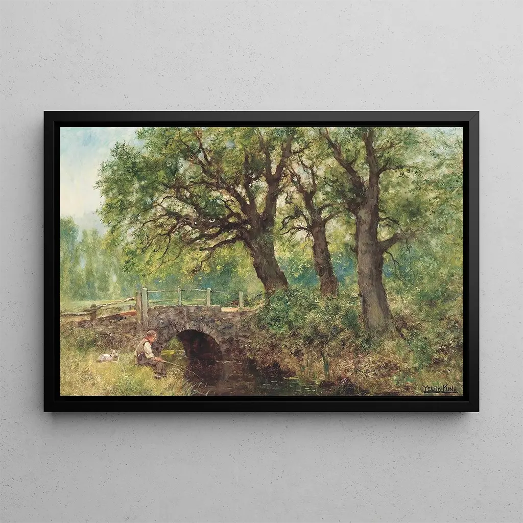 Un joven pescador : una escena de serenidad junto al agua En "Un joven pescador", Henry John Yeend King nos sumerge en una atmósfera pacífica y contemplativa. La tela, bañada en una luz suave, representa a un joven en plena pesca, rodeado de la naturaleza exuberante. Los colores pastel, combinando matices de verde, azul y dorado, crean una armonía visual que invita a la ensoñación. La técnica del artista, caracterizada por pinceladas delicadas, da vida a cada detalle, desde los reflejos en el agua hasta las hojas de los árboles. Este cuadro evoca una tranquilidad atemporal, un momento suspendido donde la naturaleza y el hombre coexisten en perfecta simbiosis. Henry John Yeend King : un maestro del realismo victoriano Henry John Yeend King, activo a finales del siglo XIX, es reconocido por su habilidad para capturar la belleza de la vida cotidiana a través de un estilo realista. Influenciado por el movimiento prerrafaelita, se centró en temas de la naturaleza y la vida rural, buscando inmortalizar instantes simples pero evocadores. Su carrera, marcada por una atención especial a los detalles y a la luz, lo convierte en una figura importante del realismo victoriano. Las obras de King, a menudo impregnadas de nostalgia, testimonian una época en la que la armonía con la naturaleza era el centro de las preocupaciones artísticas. Una adquisición decorativa con múltiples ventajas La impresión artística del cuadro "Un joven pescador" constituye una adición encantadora a cualquier decoración interior. Ya sea en una sala de estar, una oficina o un dormitorio, esta tela aporta un toque de serenidad y naturaleza. Su calidad de impresión garantiza fidelidad en los colores y detalles de la obra original, permitiendo disfrutar plenamente de la atmósfera relajante que transmite. Con su atractivo estético indiscutible, esta impresión artística es una opción ideal para quienes desean enriquecer su espacio vital con una obra de arte que evoca la belleza sencilla de la naturaleza.