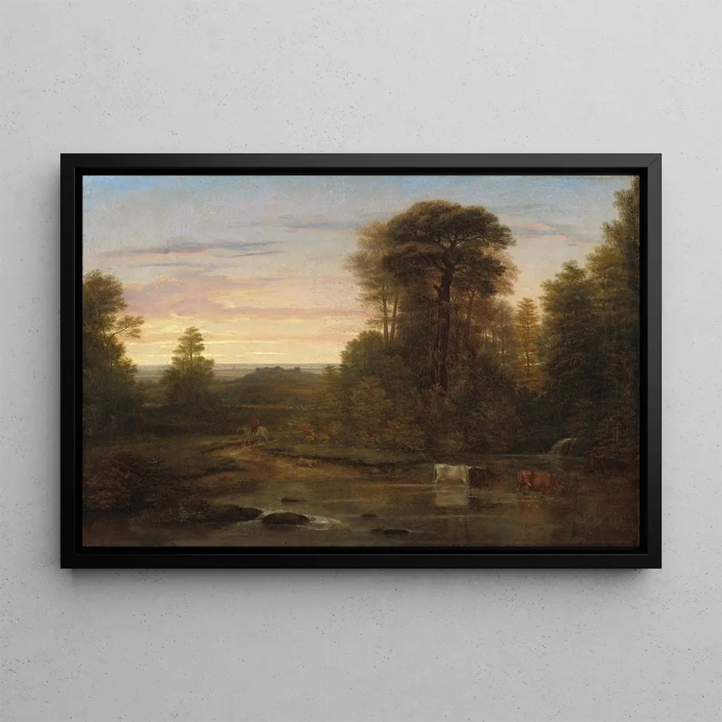 Un paisaje después de la puesta de sol : una escapada hacia la serenidad La impresión artística "Un paisaje después de la puesta de sol" de Washington Allston evoca una atmósfera tranquila y contemplativa. Los colores cálidos del crepúsculo se mezclan armoniosamente, creando un degradado de matices que van desde el naranja brillante hasta el violeta profundo. La técnica de óleo sobre impresión artística permite capturar la luz de manera sutil, dando vida a un paisaje donde las sombras bailan suavemente. Las siluetas de los árboles se recortan en el cielo ardiente, invitando al espectador a sumergirse en esta escena idílica. Cada pincelada parece contar una historia, la de un momento suspendido en el tiempo, propicio para la ensoñación. Washington Allston : un pionero del romanticismo estadounidense Washington Allston, pintor y poeta del comienzo del siglo XIX, es a menudo considerado uno de los precursores del romanticismo estadounidense. Influenciado por los maestros europeos, en particular Turner y Constable, Allston supo desarrollar un estilo único que combina realismo y emoción. Su carrera, marcada por viajes por Europa, le permitió incorporar elementos de la naturaleza en sus obras, explorando también temas espirituales y poéticos. "Un paisaje después de la puesta de sol" se inscribe en esta búsqueda de una belleza trascendente, reflejando la importancia de la naturaleza en el arte estadounidense naciente. Una adquisición decorativa con múltiples ventajas La impresión artística de "Un paisaje después de la puesta de sol" es una elección ideal para embellecer su interior, ya sea en una sala de estar, una oficina o un dormitorio. Su paleta de colores cálidos y relajantes crea un ambiente tranquilizador, perfecto para relajarse después de un día largo. La calidad de la impresión artística garantiza una fidelidad notable a la obra original, permitiendo disfrutar de su atractivo estético a diario. Al agregar esta impresión artística a su decoración, invita no solo un pedazo de historia del arte a su hogar, sino también una fuente de inspiración y serenidad.
