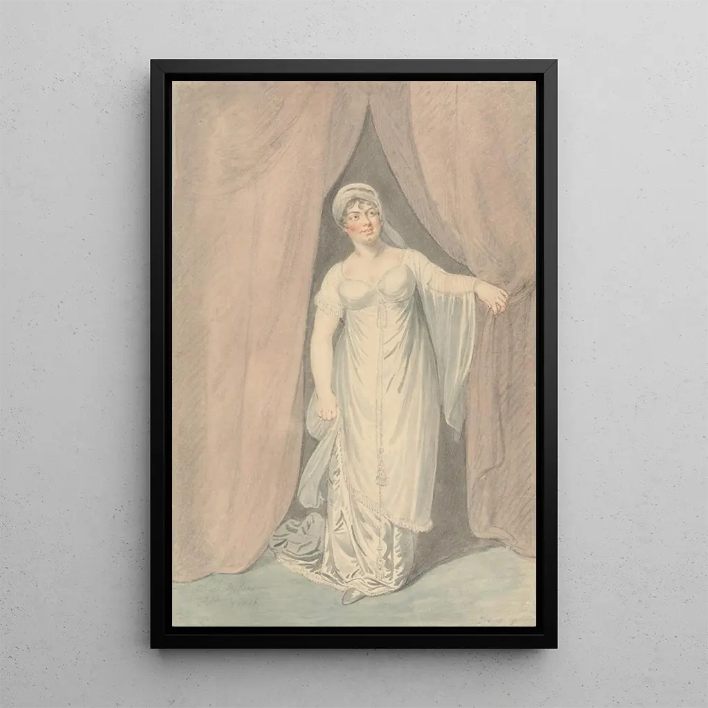 En esta impresión artística de Una actriz, Samuel de Wilde captura la esencia de la belleza femenina con una delicadeza notable. La composición destaca una figura femenina elegante, vestida con tejidos lujosos que parecen casi palpables. Los colores, ricos y vibrantes, evocan una atmósfera a la vez íntima y teatral, mientras que la luz desempeña un papel esencial, acentuando los rasgos delicados del rostro. La técnica del artista, combinando realismo y romanticismo, crea una conexión emocional fuerte con el espectador, invitando a una contemplación prolongada de esta obra.