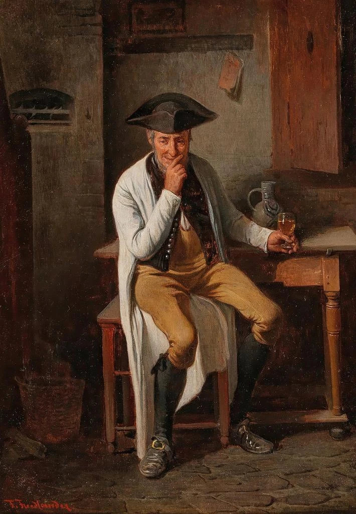 Friedrich Friedländer, activo en el siglo XIX, suele asociarse con representaciones de la vida cotidiana y de las interacciones humanas. Su estilo, influenciado por el realismo, se centra en escenas de la vida diaria, destacando las emociones y las relaciones interpersonales. Aunque menos conocido que algunos de sus contemporáneos, su obra demuestra una profunda comprensión de las dinámicas sociales de su época. "una buena sorbo" ilustra perfectamente este enfoque, capturando un instante de felicidad compartida que aún resuena hoy en día.