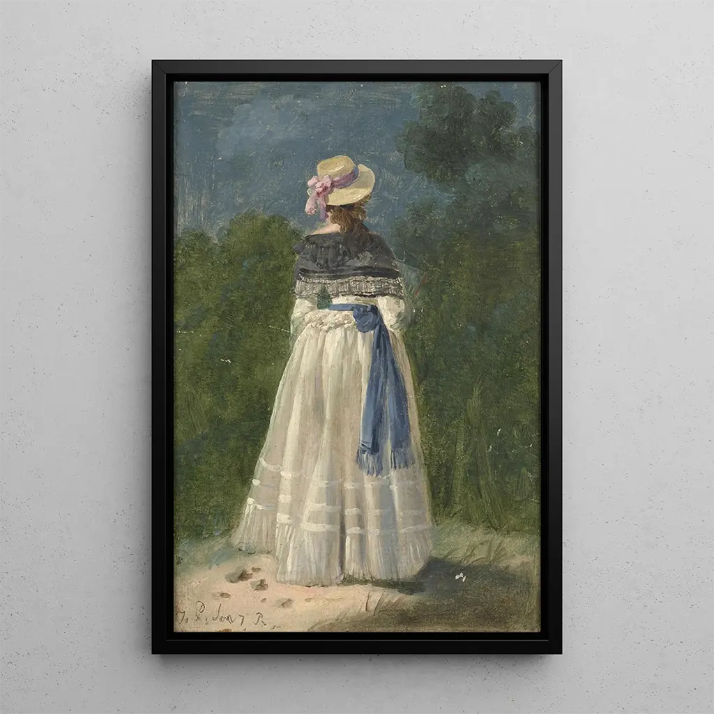La impresión artística de "Una dama elegante vista de espaldas" es una pieza decorativa ideal para enriquecer su interior, ya sea en una sala de estar, una oficina o un dormitorio. Su calidad de impresión garantiza una fidelidad notable a los matices y texturas de la obra original, permitiendo así disfrutar plenamente de su atractivo estético. Este cuadro, con su silueta elegante, aportará un toque de sofisticación y encanto a su decoración, mientras suscita la admiración de sus invitados. Optar por esta impresión artística es elegir integrar una obra de arte atemporal que evoca la belleza y la elegancia del siglo XVIII.