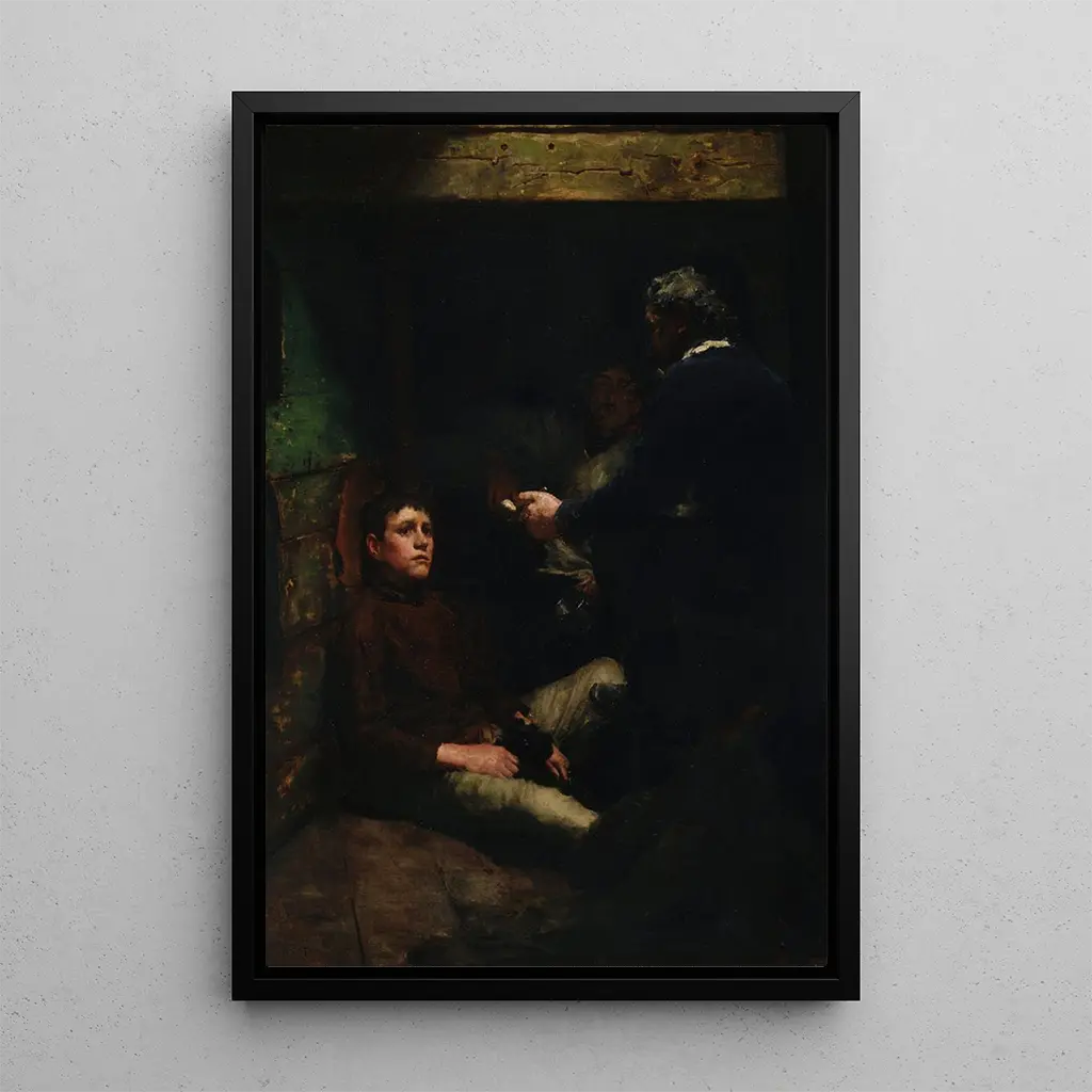 La obra "Una historia de marin" de Henry Scott Tuke evoca con delicadeza la belleza del mundo marítimo. Este cuadro, bañado en luz, presenta a un joven marin, cuyo rostro se ilumina con los rayos del sol. Los colores vibrantes, que van desde los azules profundos del mar hasta los tonos dorados de la arena, crean una atmósfera cálida y acogedora. La técnica de Tuke, caracterizada por pinceladas fluidas y una atención minuciosa a los detalles, da vida a esta escena, transportando al espectador a un momento de tranquilidad y contemplación. La impresión artística invita a escapar hacia costas lejanas, donde el mar y el cielo se encuentran en una armonía perfecta.