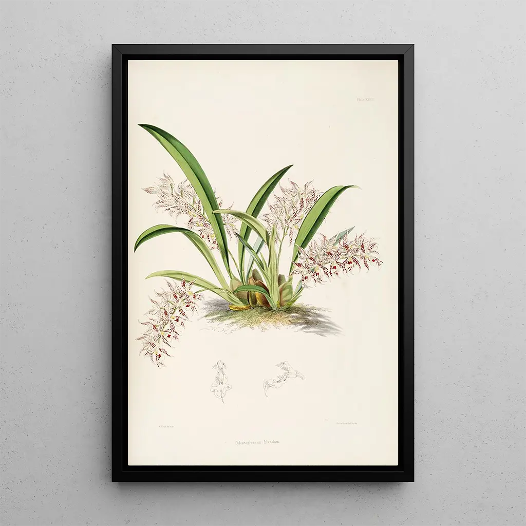 Esta impresión artística "Odontoglossum Pl27" es una pieza decorativa ideal para embellecer diversos espacios como la sala, la oficina o incluso el dormitorio. Su calidad de impresión garantiza una fidelidad notable a los detalles de la obra original, permitiendo disfrutar plenamente de su belleza. El atractivo estético de esta obra reside en su capacidad para aportar un toque de naturaleza y elegancia a su interior. Al integrar este cuadro en su decoración, ofrece a su espacio una atmósfera serena y refinada, celebrando al mismo tiempo el arte botánico.