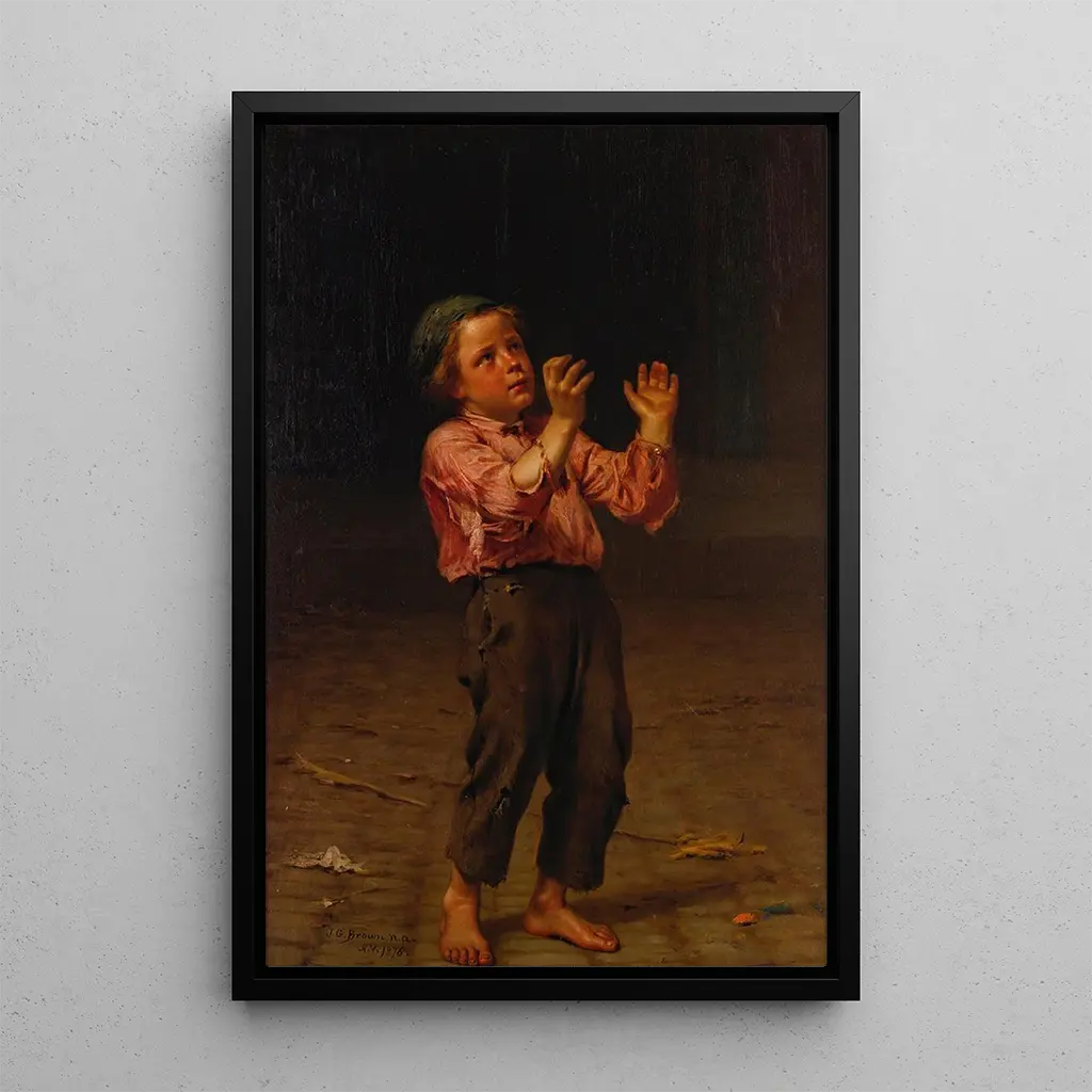 John George Brown, activo en el siglo XIX, es reconocido por sus retratos de niños y escenas de la vida cotidiana. Influenciado por el movimiento realista, supo capturar la esencia de la infancia con una sensibilidad única. Sus obras, a menudo impregnadas de nostalgia, reflejan una época en la que el arte buscaba representar la vida tal como es, lejos de las idealizaciones románticas. Brown también fue influenciado por sus viajes en Europa, donde descubrió nuevas técnicas y estilos que enriquecieron su enfoque artístico. Su legado perdura, y sus cuadros siguen evocando emociones profundas en quienes los contemplan.