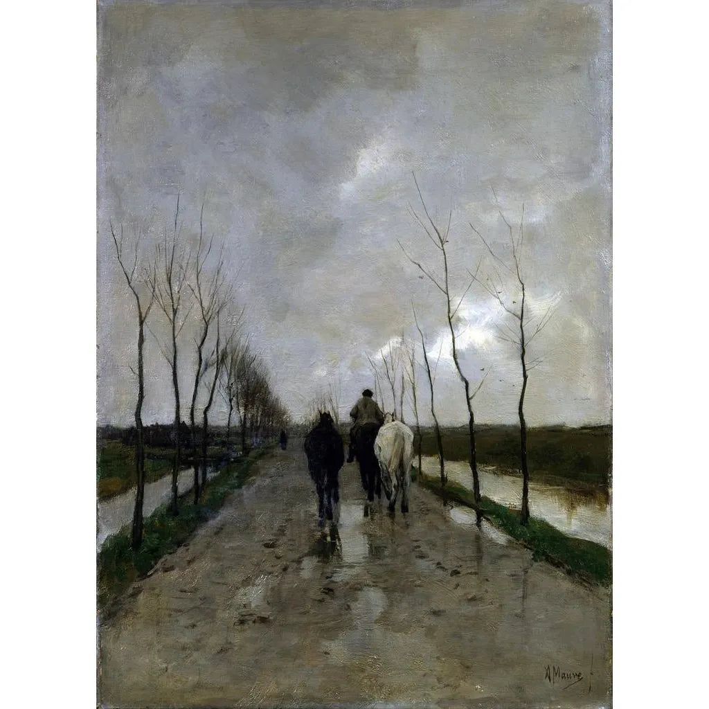 Anton Mauve, figura emblemática del movimiento realista del siglo XIX, supo capturar la vida rural con una sensibilidad única. Criado en una familia de artistas, fue influenciado por los grandes maestros de su época, desarrollando su propio estilo. Mauve es reconocido por su capacidad para representar la luz y la atmósfera de los paisajes, lo que le valió un lugar destacado en la historia del arte. Una impresión artística holandesa ilustra perfectamente su talento, combinando una representación fiel de la naturaleza con una interpretación personal que trasciende el simple realismo.