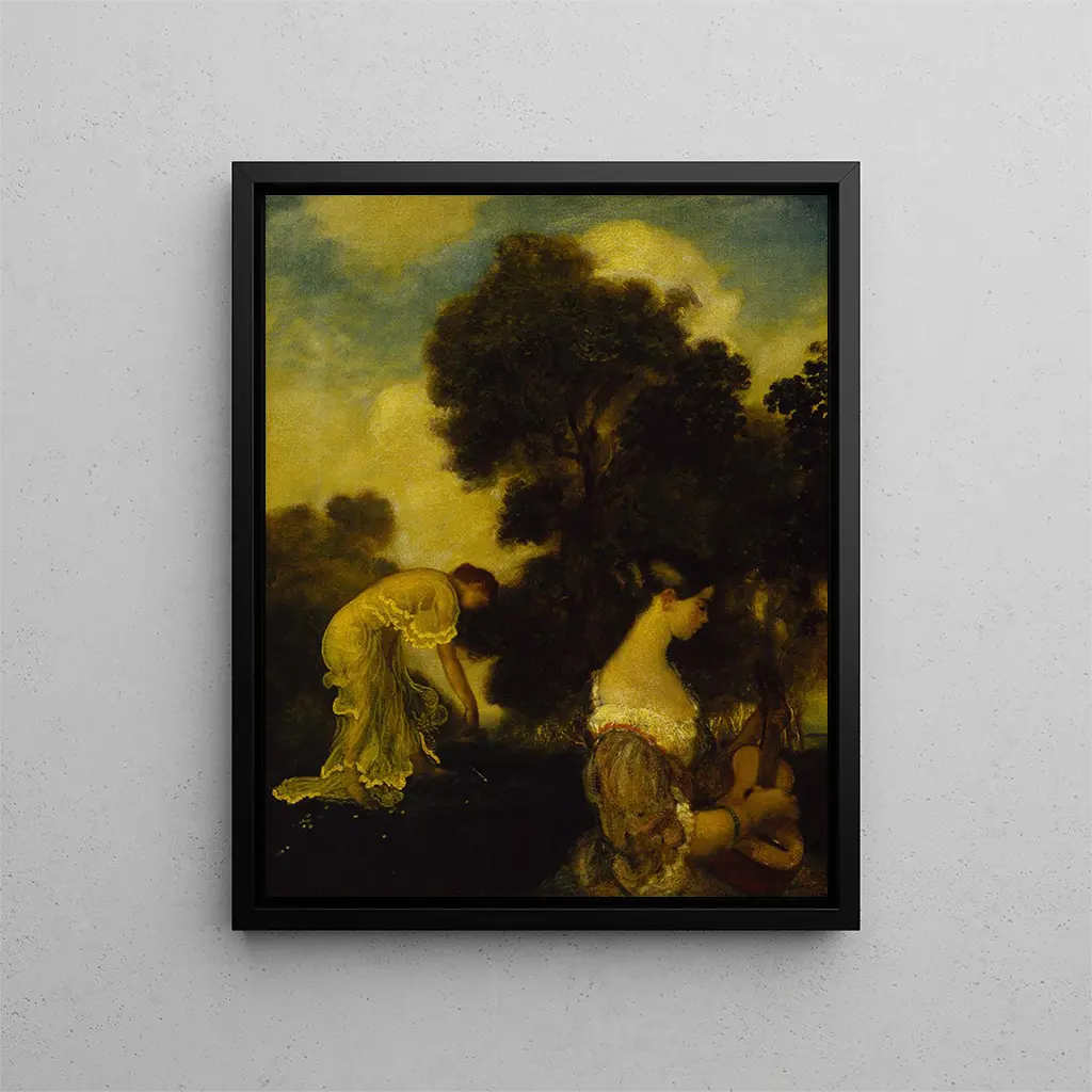 El estilo de Arthur Bowen Davies está marcado por una sensibilidad única que se manifiesta en "Vêpres". El artista utiliza una paleta de colores suaves y armoniosos, creando un equilibrio entre luz y sombra que confiere a la obra una profundidad impactante. Las siluetas de las figuras humanas, a menudo presentes en sus composiciones, están estilizadas de manera que evocan más que describen. En "Vêpres", estas formas parecen bailar al ritmo de los elementos naturales, como si estuvieran en comunión con el mundo que las rodea. La composición, a la vez dinámica y tranquilizadora, nos lleva a una reflexión sobre la armonía entre el hombre y la naturaleza. Cada detalle, cada matiz, está cuidadosamente pensado para suscitar una emoción, para hacer resonar en nosotros una melodía silenciosa.