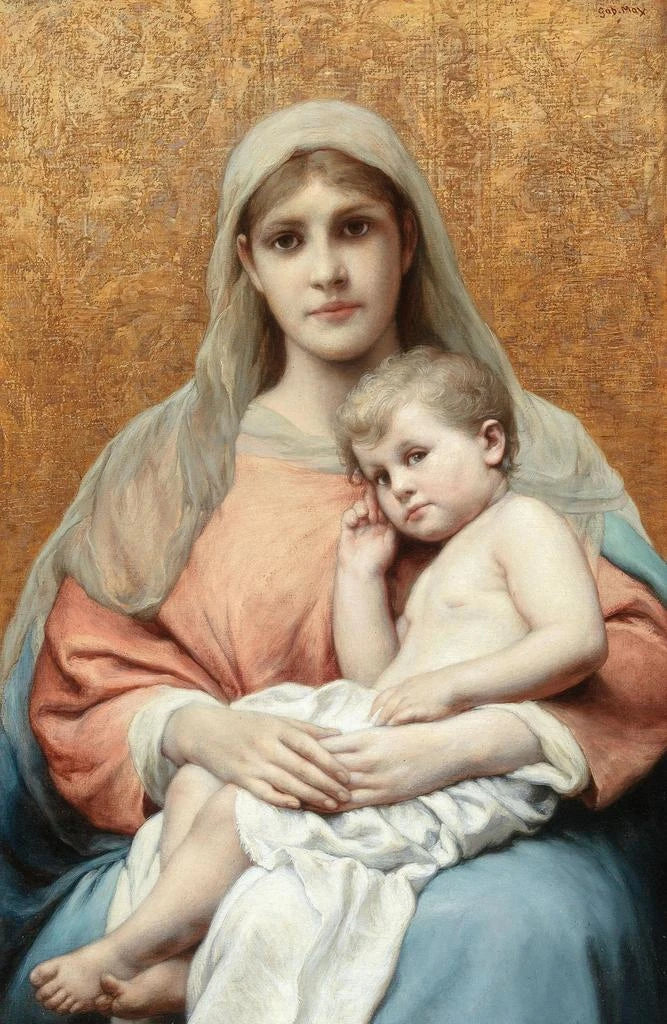 En esta obra emblemática, Gabriel von Max retrata a la Virgen María sosteniendo al Niño Jesús en un momento de dulzura y serenidad. La composición se caracteriza por colores cálidos y luminosos, que evocan la luz divina y el calor materno. Los detalles minuciosos de los rostros y las vestimentas reflejan la maestría técnica del artista, mientras que el fondo difuso concentra la atención en esta escena sagrada. La atmósfera que emana de este lienzo está impregnada de paz y espiritualidad, invitando al espectador a una contemplación silenciosa.