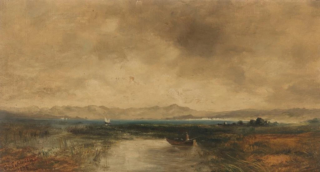Eduard Schleich l'Ancien, pintor alemán del siglo XIX, es reconocido por sus paisajes que capturan la belleza natural de Alemania. Influenciado por el romanticismo, supo traducir las emociones provocadas por la naturaleza a través de sus obras. Schleich pasó una parte de su vida explorando lagos y montañas, lo que marcó profundamente su estilo. "Vue du Chiemsee" es testimonio de su habilidad para representar la luz y la atmósfera, convirtiéndolo en un actor clave en la evolución de la pintura de paisaje en Europa.