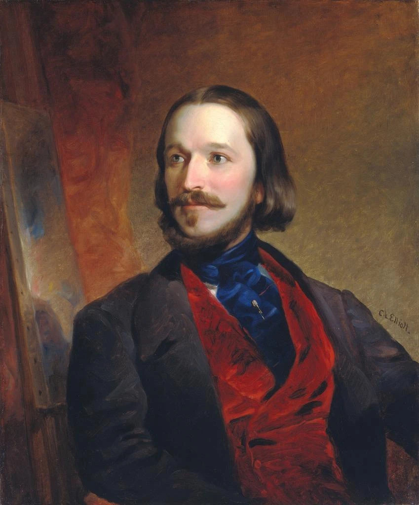 El estilo de esta obra se caracteriza por un realismo meticuloso, típico del trabajo de William Sidney Mount. Cada detalle, desde las expresiones faciales hasta los pliegues de la ropa, está tratado con una precisión que demuestra una observación atenta del mundo. Mount, conocido por sus escenas de la vida cotidiana, logra aquí captar la intimidad de un momento compartido. La luz juega un papel fundamental, iluminando delicadamente el rostro de Charles Loring Elliott, mientras crea un contraste sutil con el fondo. Esta maestría en la luz y la sombra confiere a la obra una atmósfera casi palpable, invitando al espectador a adentrarse en este diálogo silencioso. La composición, a la vez equilibrada y dinámica, guía la mirada hacia el tema principal mientras deja entrever el entorno que lo rodea, reforzando así la narrativa visual.